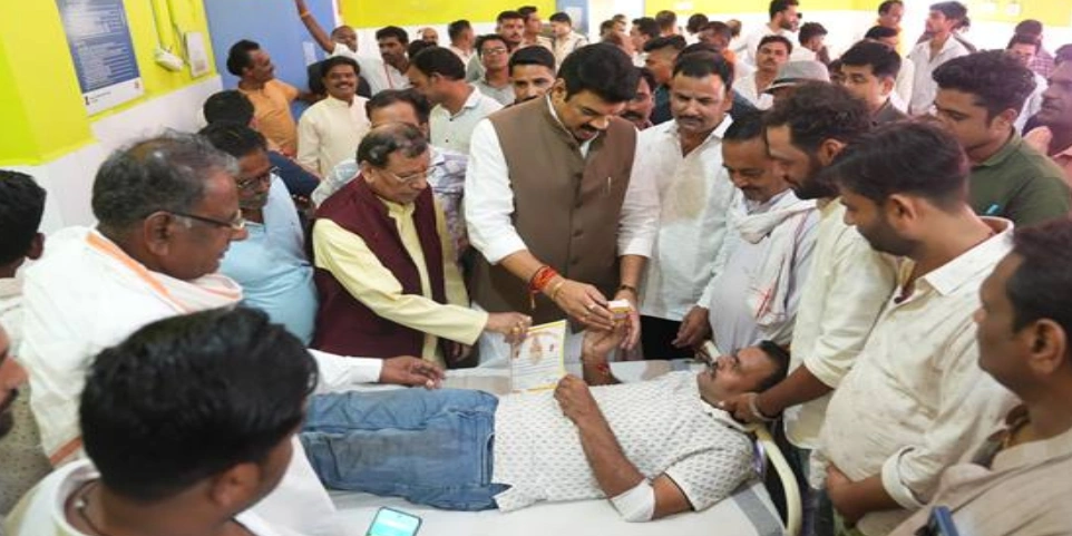 सुरखी में सेवा पखवाड़ा के तहत आयोजित रक्तदान शिविर में शामिल हुए मंत्री राजपूत