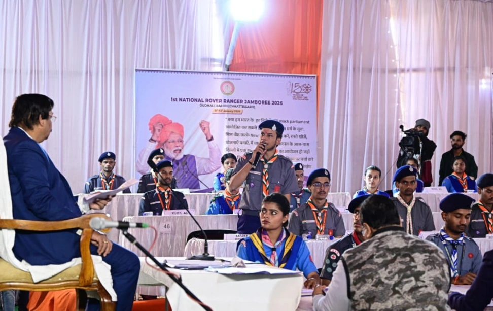 रायपुर, 11 जनवरी 2026- नेशनल रोवर – रेंजर जंबूरी का आयोजन पूरे उत्साह, अनुशासन और जीवंत सहभागिता के साथ बालोद जिले के ग्राम दुधली में सम्पन्न किया रहा है। आयोजन के तीसरे दिन जंबूरी परिसर लोकतांत्रिक चेतना का केंद्र बन गया, जब रोवर–रेंजरों एवं उपस्थित नागरिकों को लोकसभा की वास्तविक कार्यवाही का प्रत्यक्ष और व्यावहारिक अनुभव कराया गया। यूथ पार्लियामेंट के मंच पर रोवर–रेंजरों ने सांसदों की भूमिका निभाई वहीं विधानसभा के अध्यक्ष संसद के अध्यक्ष की भूमिका का निर्वहन किया। युवाओं ने जिस आत्मविश्वास, विषयगत समझ और मर्यादित संवाद शैली का प्रदर्शन किया, वह दर्शनीय था। यह मंच भावी जनप्रतिनिधियों को गढ़ने का सशक्त माध्यम गया था।