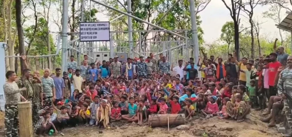 रायपुर, 07 दिसम्बर 2025- दूरसंचार, बिजली और सड़क जैसी मूलभूत सुविधाएँ जहाँ देश के अधिकांश हिस्सों में सामान्य जीवन का आधार बन चुकी हैं, वहीं बस्तर संभाग के कुछ सुदूर वनांचलों ने दशकों तक इन सुविधाओं को कभी देखा ही नहीं था। ऐसे ही एक इलाके, बीजापुर जिले के ग्राम कोंडापल्ली, में अभूतपूर्व उत्सव का माहौल देखने को मिला जब गाँव में पहली बार मोबाइल नेटवर्क आया। कोंडापल्ली तेलंगाना और छत्तीसगढ़ की सीमा पर स्थित एक घना वनांचल है, जहाँ वर्षों से सड़क, बिजली और पेयजल जैसी सुविधाएँ उपलब्ध नहीं थीं। ऐसे में गाँव में मोबाइल टॉवर स्थापित होना स्थानीय समुदाय के लिए केवल तकनीकी प्रगति नहीं, बल्कि दुनिया से जुड़ने का प्रतीक बन गया। जैसे ही टॉवर के सक्रिय होने की घोषणा हुई, ग्रामीणों में उत्साह की लहर दौड़ पड़ी। महिलाएँ, पुरुष, बच्चे — सभी रैली के रूप में टॉवर स्थल तक पहुँचे। पारंपरिक विधि से टॉवर की पूजा-अर्चना की गई। माँदर की थाप पर लोग भावुक होकर नाच उठे। यह दृश्य किसी उत्सव से कम नहीं था।