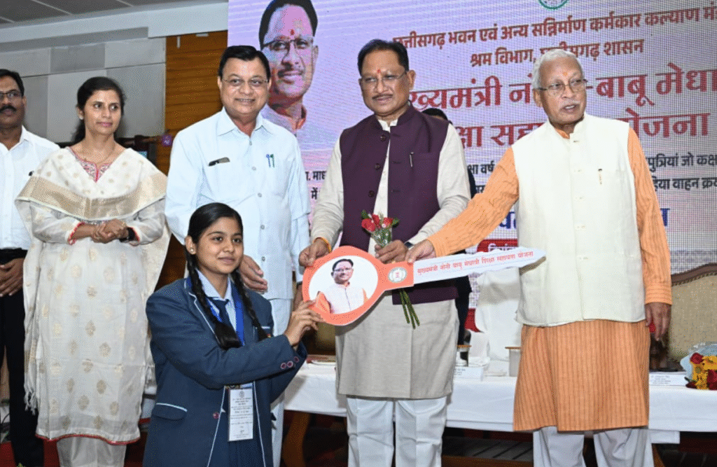 रायपुर 15 जून 2025: “हम श्रमिक परिवारों के सशक्तिकरण और उत्थान के लिए समर्पित भाव से कार्य कर रहे हैं। आपका स्नेह और सहयोग ही हमारी सबसे बड़ी ताकत है और हम सब मिलकर एक विकसित, समृद्ध और सशक्त छत्तीसगढ़ के संकल्प को साकार करेंगे।” मुख्यमंत्री विष्णु देव साय आज राजधानी रायपुर के न्यू सर्किट हाउस में आयोजित मुख्यमंत्री नोनी बाबू मेधावी शिक्षा सहायता योजना के तहत कक्षा दसवीं और बारहवीं के टॉप 10 में स्थान पाने वाले पंजीकृत श्रमिकों के 31 मेधावी बच्चों को दो-दो लाख रुपए की प्रोत्साहन राशि का वितरण कर कार्यक्रम को संबोधित कर रहे थे। इस दौरान मुख्यमंत्री ने छत्तीसगढ़ भवन एवं अन्य सन्निर्माण कर्मकार कल्याण मंडल में पंजीकृत राज्य के 38 हजार 200 निर्माण श्रमिकों को विभिन्न योजनाओं के तहत 19.71 करोड़ रूपए से ज्यादा की सहायता राशि सीधे उनके बैंक खातों में हस्तांतरित की। मुख्यमंत्री ने 10वीं और 12वीं की परीक्षाओं में उत्कृष्ट परिणाम हासिल करने वाले श्रमवीरों के मेधावी बच्चों को शुभकामनाएं देते हुए कहा कि हमारी सरकार श्रमिक परिवारों की आवश्यकताओं को भली-भांति समझती है और उनके समग्र कल्याण के लिए समर्पित भाव से कार्य कर रही है। उन्होंने कहा कि आज श्रमिक परिवार का बच्चा विदेश जाकर पढ़ना चाहे तो उसके लिए भी 50 लाख रुपए तक की सहायता का प्रावधान श्रम विभाग द्वारा किया गया है। साय ने कहा कि हम नवाचार के साथ कदमताल करते हुए ऐसी नीतियां बना रहे हैं, जिनसे प्रदेश के युवाओं को अधिक से अधिक रोजगार मिले। प्रदेश की आकर्षक उद्योग नीति का उल्लेख करते हुए उन्होंने बताया कि अब तक 5 लाख करोड़ रुपए से अधिक के निवेश प्रस्ताव राज्य सरकार को प्राप्त हो चुके हैं, जिससे बड़े पैमाने पर रोजगार के अवसर सृजित होंगे।