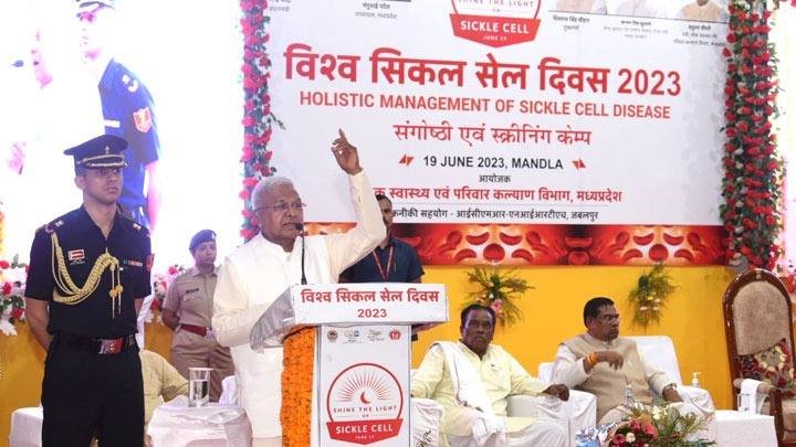 राज्यपाल श्री मंगूभाई पटेल ने कहा है कि सिकल सेल एनीमिया के उन्मूलन के लिए जन जागरूकता आवश्यक है। सिकल सेल एनीमिया की प्रभावी रोकथाम, प्रबंधन और उपचार के लिए प्रत्येक समुदाय और व्यक्ति को भागीदार बनकर मानवता की सेवा करनी होगी। राज्यपाल श्री पटेल 19 जून को मंडला के सेमरखापा के एकलव्य परिसर में विश्व सिकल सेल दिवस पर संगोष्ठी एवं स्क्रीनिंग शिविर को संबोधित कर रहे थे.