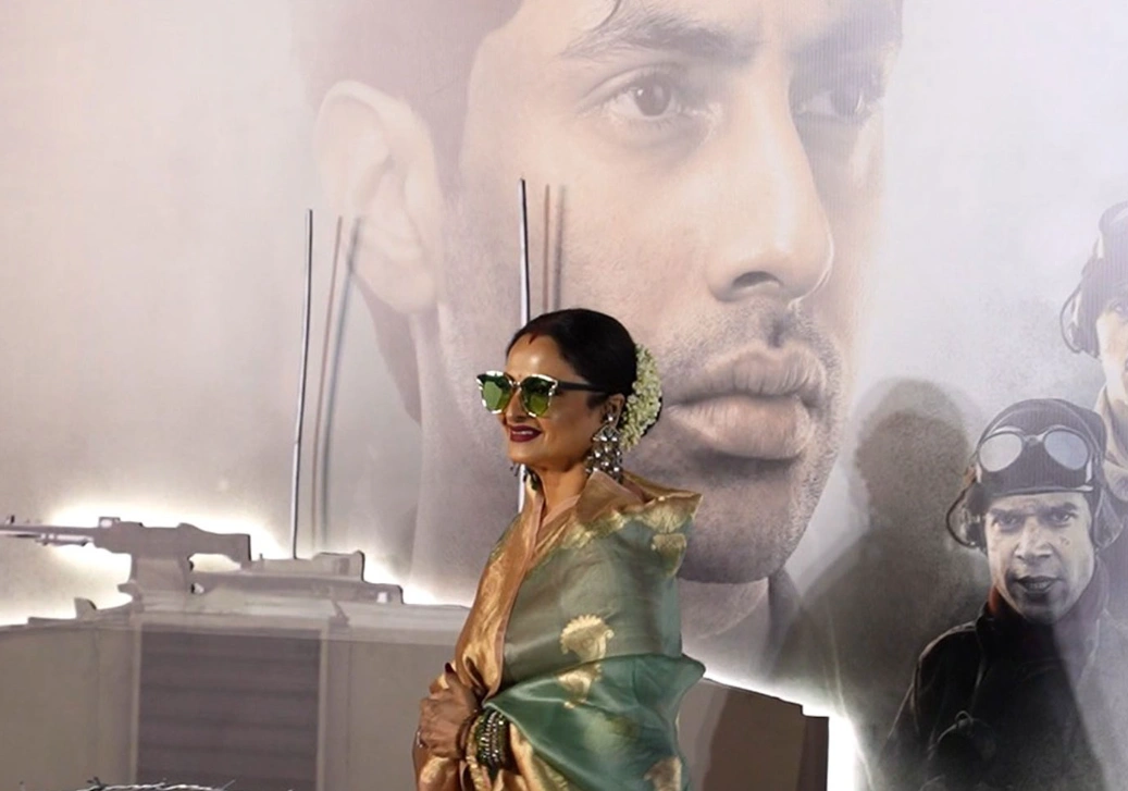 रेखा का खास स्नेह और आशीर्वाद-प्रीमियर में सबसे ज्यादा चर्चा एक्ट्रेस रेखा की रही। उन्होंने सादगी और गरिमा के साथ इवेंट में हिस्सा लिया। रेखा ने धर्मेंद्र के पोस्टर को नमन किया और फिर अगस्त्य नंदा के पोस्टर के पास जाकर प्यार से किस किया। इसके साथ ही उन्होंने अगस्त्य को आशीर्वाद भी दिया, जो सबके दिल को छू गया।