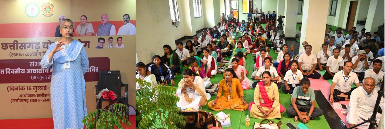 उल्लेखनीय है कि रायपुर, बिलासपुर एवं बस्तर संभाग के सफल आयोजन के बाद सरगुजा संभाग के प्रशिक्षणार्थियों के लिए सात दिवसीय आवासीय योग प्रशिक्षण शिविर का आयोजन किया जा रहा है। इसमें सरगुजा संभाग के सभी जिलों से लगभग 130 प्रतिभागी शामिल हुए हैं। प्रशिक्षण शिविर का शुभारंभ 15 जुलाई को शंकराचार्य आश्रम बोरियाकला के मुख्य पुजारी श्री इंदुभवानंद जी महाराज के मुख्य आतिथ्य और छत्तीसगढ़ योग आयोग के अध्यक्ष श्री ज्ञानेश शर्मा की अध्यक्षता में किया गया। उन्होंने कहा कि स्वस्थ एवं दीर्घायु जीवन के लिए नियमित योग करना हर व्यक्ति के लिए आवश्यक है।