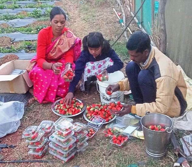 जशपुर के किसान श्री धनेश्वर राम ने बताया कि पहले उनके पास कुछ जमीन थी जो ज्यादा उपजाऊ नहीं थी, बंजर थी. कम मात्रा में धान उगाना संभव नहीं था। विशेषज्ञों से निर्देश मिलने के बाद उन्होंने फल उगाना शुरू किया। नाबार्ड से भी सहयोग मिला। उन्होंने 25 दशमलव स्थानों के एक खेत में स्ट्रॉबेरी के 2000 पौधे लगाए। तीन माह में अच्छे परिणाम सामने आए। बाजार में इसके लिए उन्हें 400 रुपये किलो मिलते हैं। वह अब तक करीब 70 हजार रुपए कमा चुके हैं। उन्हें राष्ट्रीय बागवानी मिशन से मल्चिंग और तकनीकी सहायता प्राप्त हुई।