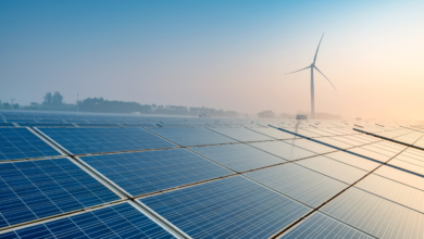 स्वच्छ ऊर्जा का सुपरपावर: सौर पैनलों से ढकी सूखी, बंजर ज़मीन और समुद्र तट पर खड़े विशाल पवन चक्कियां, भारत…