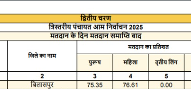 त्रिस्तरीय पंचायतों का आम निर्वाचन 2025 द्वितीय चरण में 43 विकासखंडो में हुआ मतदान 81.22 प्रतिशत रहा औसत मतदान नवा…