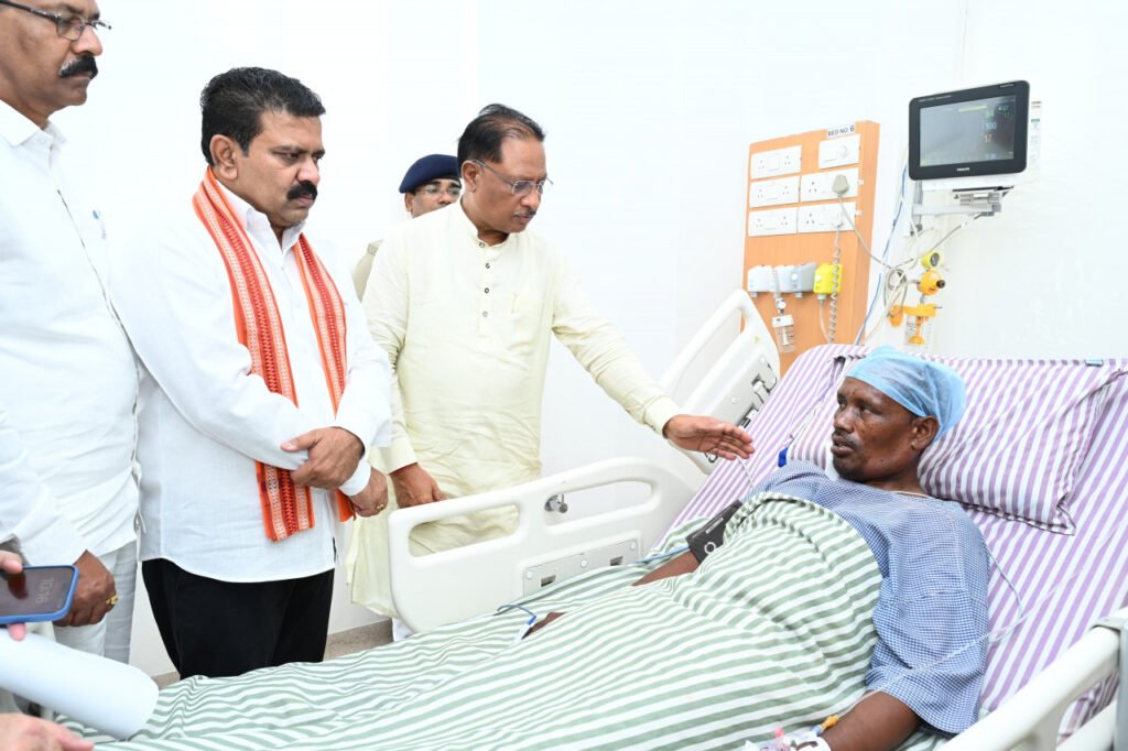 दरअसल मुख्यमंत्री श्री विष्णु देव साय और उपमुख्यमंत्री श्री विजय शर्मा नारायणपुर जिले में नक्सली मुठभेड़ में घायल जवानों से मिलने राजधानी रायपुर के रामकृष्ण केयर अस्पताल पहुंचे थे।