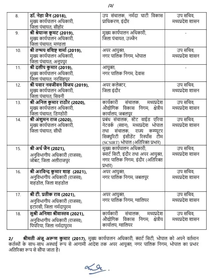 मध्य प्रदेश में 20 आईएएस अधिकारियों के तबादले, कई जिलों में बदली जिम्मेदारियां
