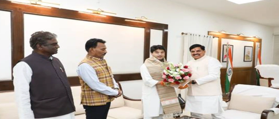 मुख्यमंत्री डॉ. यादव से केंद्रीय संचार मंत्री सिंधिया ने की सौजन्य भेंट
