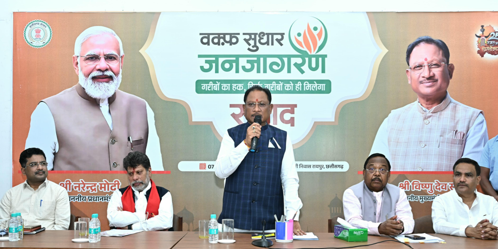 रायपुर, 07 मई 2025: वक्फ संशोधन कानून मुस्लिम समाज के खिलाफ नहीं, बल्कि उनके हित में है। हम सभी का सम्मिलित प्रयास और उद्देश्य होना चाहिए कि वक्फ कानून को लेकर समाज में किसी भी प्रकार का भ्रम न फैले। सभी को वास्तविकता को समझना चाहिए और दूसरों को भी इसकी जानकारी देनी चाहिए। वक्फ संशोधन कानून को लेकर देशभर में जनजागरण अभियान चलाया जा रहा है, और इसी कड़ी में आज मुख्यमंत्री विष्णु देव साय ने अपने निवास कार्यालय में आयोजित वक्फ सुधार जनजागरण कार्यक्रम में यह बात कही। मुख्यमंत्री साय ने कहा कि वक्फ बोर्ड संशोधन अधिनियम मुस्लिम समुदाय के हितों की रक्षा हेतु एक महत्वपूर्ण कदम उठाया गया है। उन्होंने कहा कि वक्फ बोर्ड का गठन बहुत ही पुनीत उद्देश्य के साथ किया गया था, ताकि मुस्लिम समाज, विशेषकर गरीब वर्ग और पसमांदा मुसलमानों को लाभ मिल सके। लेकिन विगत वर्षों में कुछ रसूखदार लोगों ने इस कानून का लाभ उठाकर अपना स्वार्थ सिद्ध किए, जिससे गरीब मुसलमान अपने अधिकारों से वंचित रह गए।
