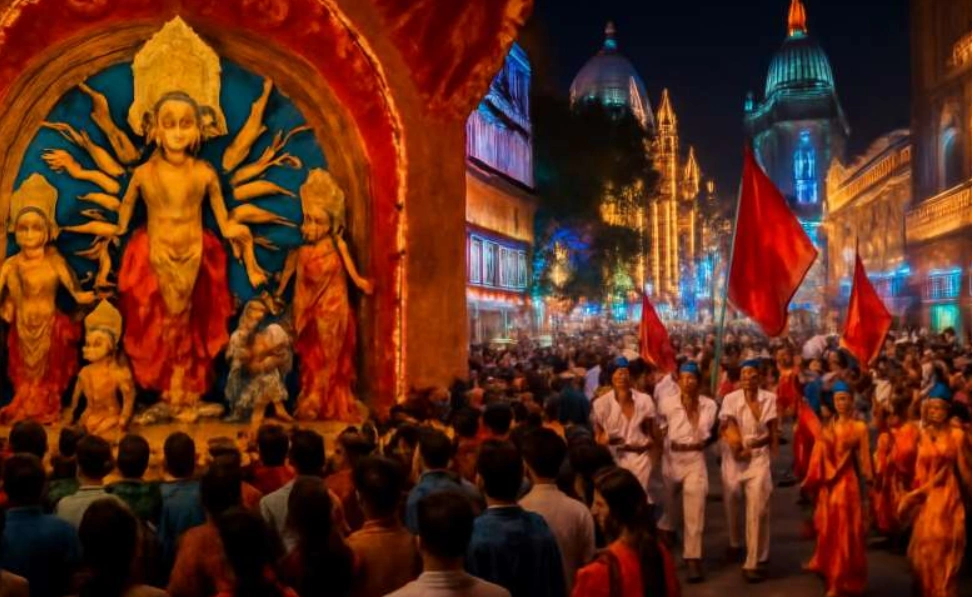 दुर्गा पूजा: कारोबार में बहार, अर्थव्यवस्था की रफ्तार!-दुर्गा पूजा, पश्चिम बंगाल का सबसे बड़ा त्योहार, सिर्फ एक धार्मिक उत्सव नहीं है, बल्कि यह राज्य की अर्थव्यवस्था के लिए एक बड़ा मौका भी है। इस साल, दुर्गा पूजा ने एक शानदार वापसी की है, और 2025 में इसके ₹46,000–₹50,000 करोड़ तक पहुंचने का अनुमान है! यह पिछले साल की गिरावट के बाद एक मजबूत रिकवरी है। तो, आइए जानते हैं कि इस बार क्या खास रहा!